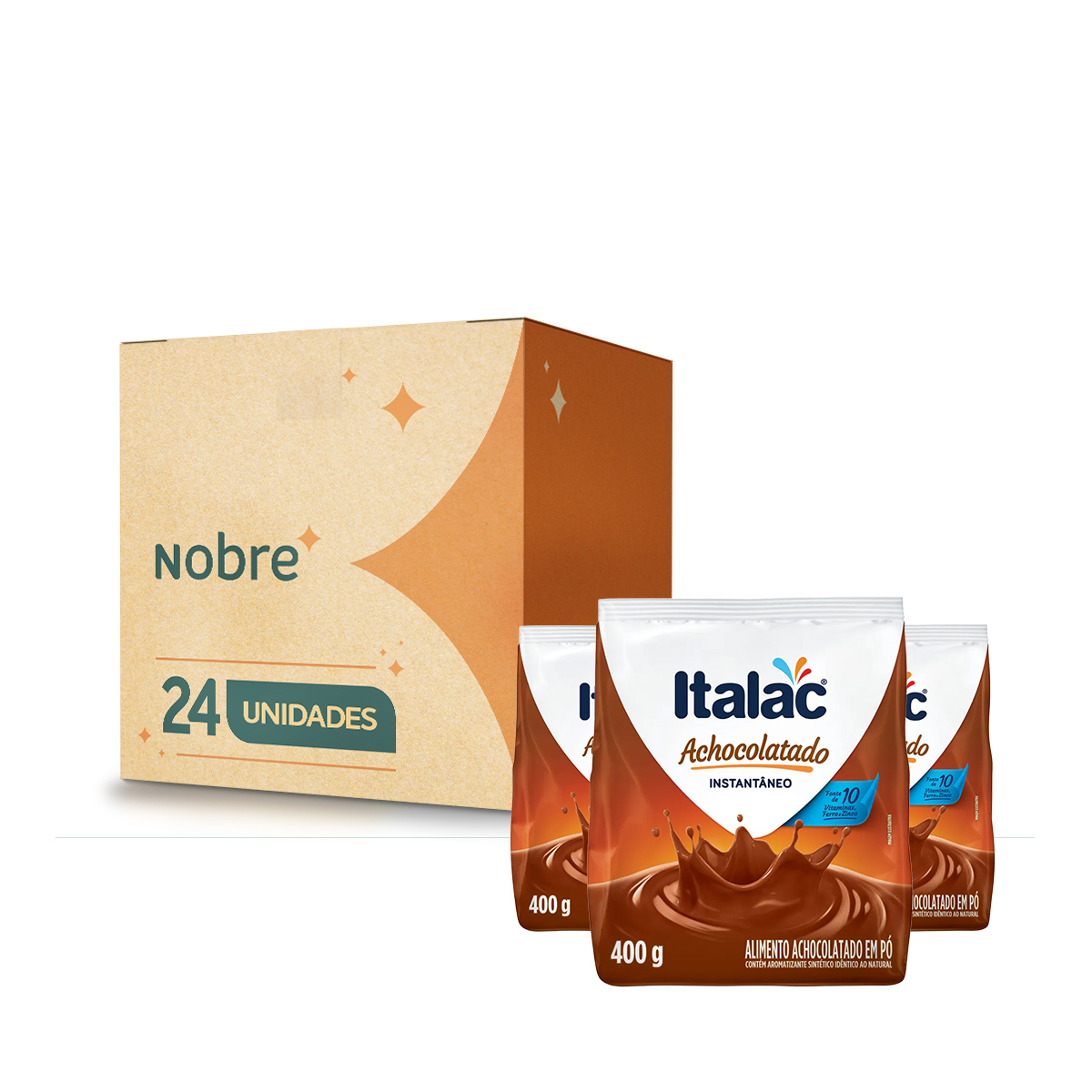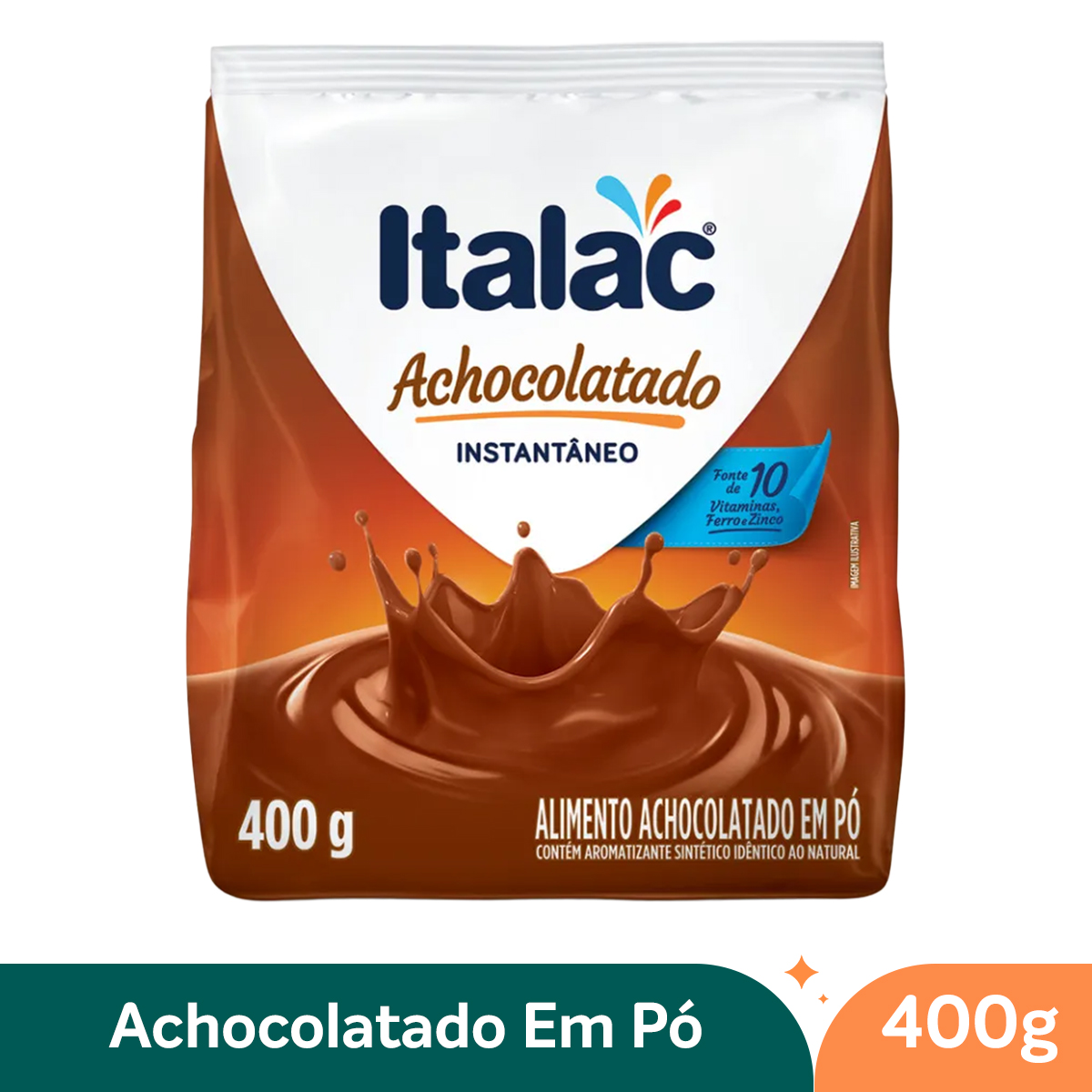 Ingredientes: Açúcar, cacau em pó, maltodextrina, sal, vitaminas (A, D3, B1, B2, B3, B5, B6, B7, B9, B12), minerais (ferro e zinco), emulsificante lecitina de soja e aromatizante.