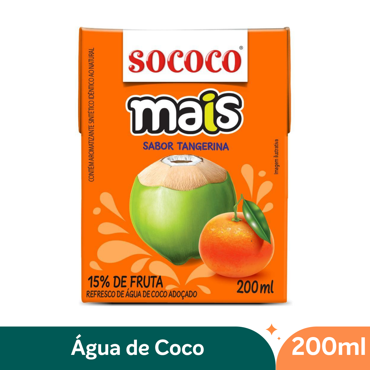 Ingredientes: Água, água de coco integral, sacarose, acidulante ácido cítrico, aromatizante idêntico ao natural de tangerina, regulador de acidez fosfato de potássio e citrato de sódio, e corante sintético idêntico ao natural beta-caroteno.