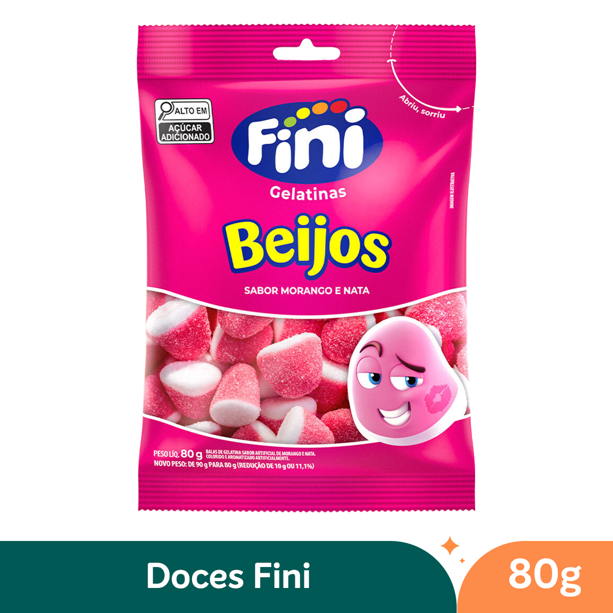 A Bala Gelatina Beijos Morango e Nata Fini 80g é uma deliciosa guloseima em formato de coração, que combina o sabor adocicado do morango com a cremosidade da nata. Ideal para quem busca um doce macio e saboroso, perfeito para presentear ou para momentos de prazer a qualquer hora do dia.