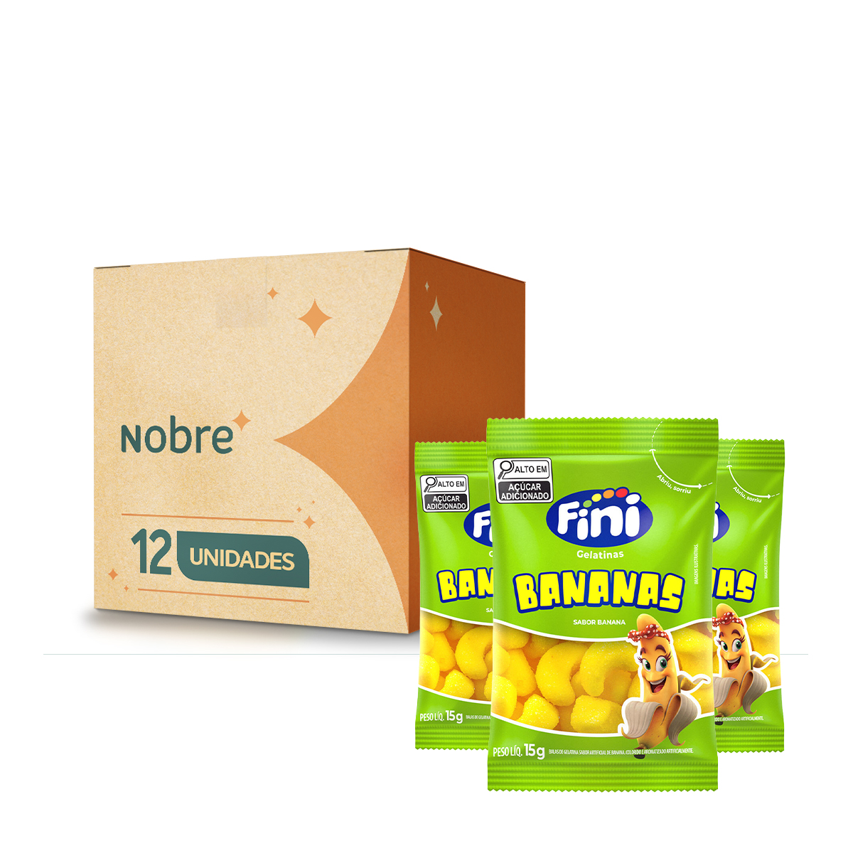 • Ingredientes principais: açúcar, xarope de glicose, gelatina, aromatizante artificial de banana