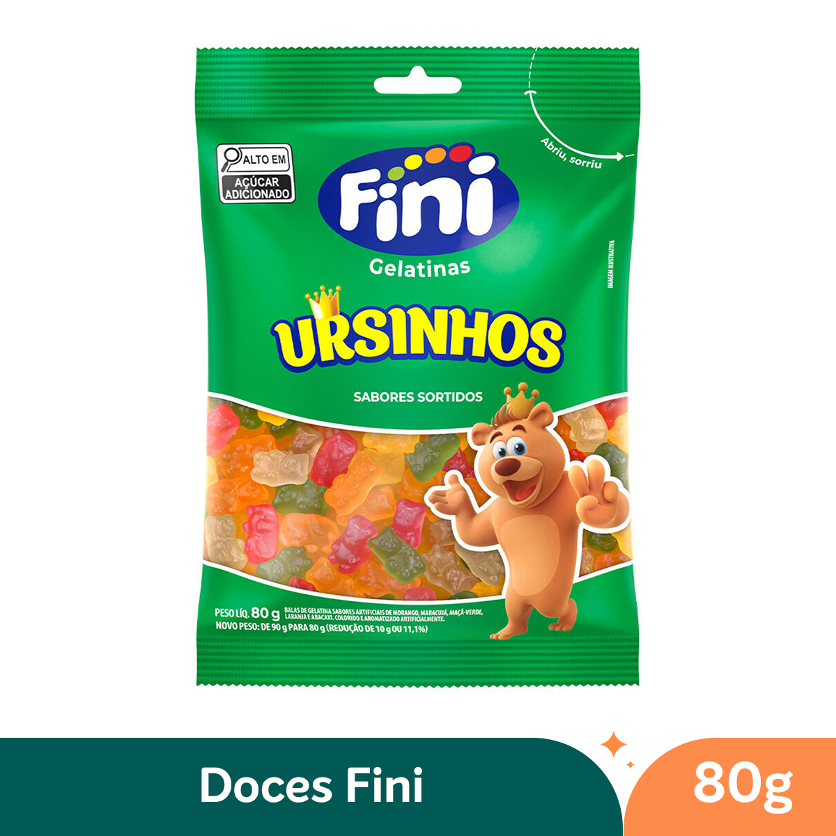 • Ingredientes principais: xarope de glicose, açúcar, gelatina, óleo vegetal de palma, acidulantes, glaceantes, aromatizantes e corantes