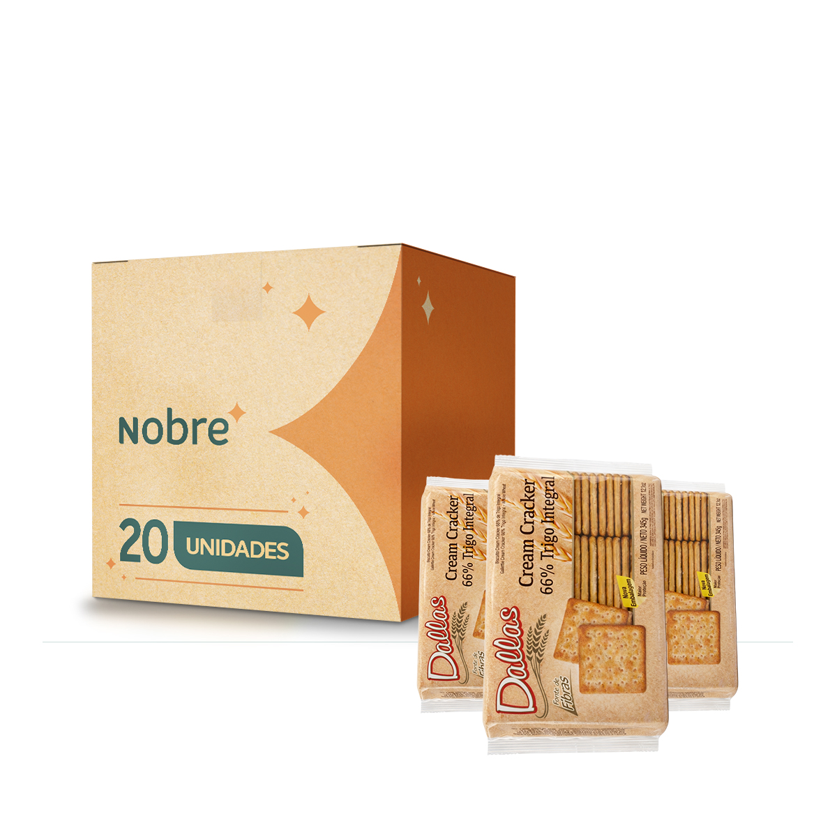 O Biscoito Cream Cracker Integral Dallas - 345g é um lanche leve e nutritivo, ideal para quem busca praticidade e uma alimentação equilibrada. Com textura crocante e sabor suave, é indicado para consumo a qualquer hora do dia, combinando perfeitamente com geleias, queijos, patês ou puro.