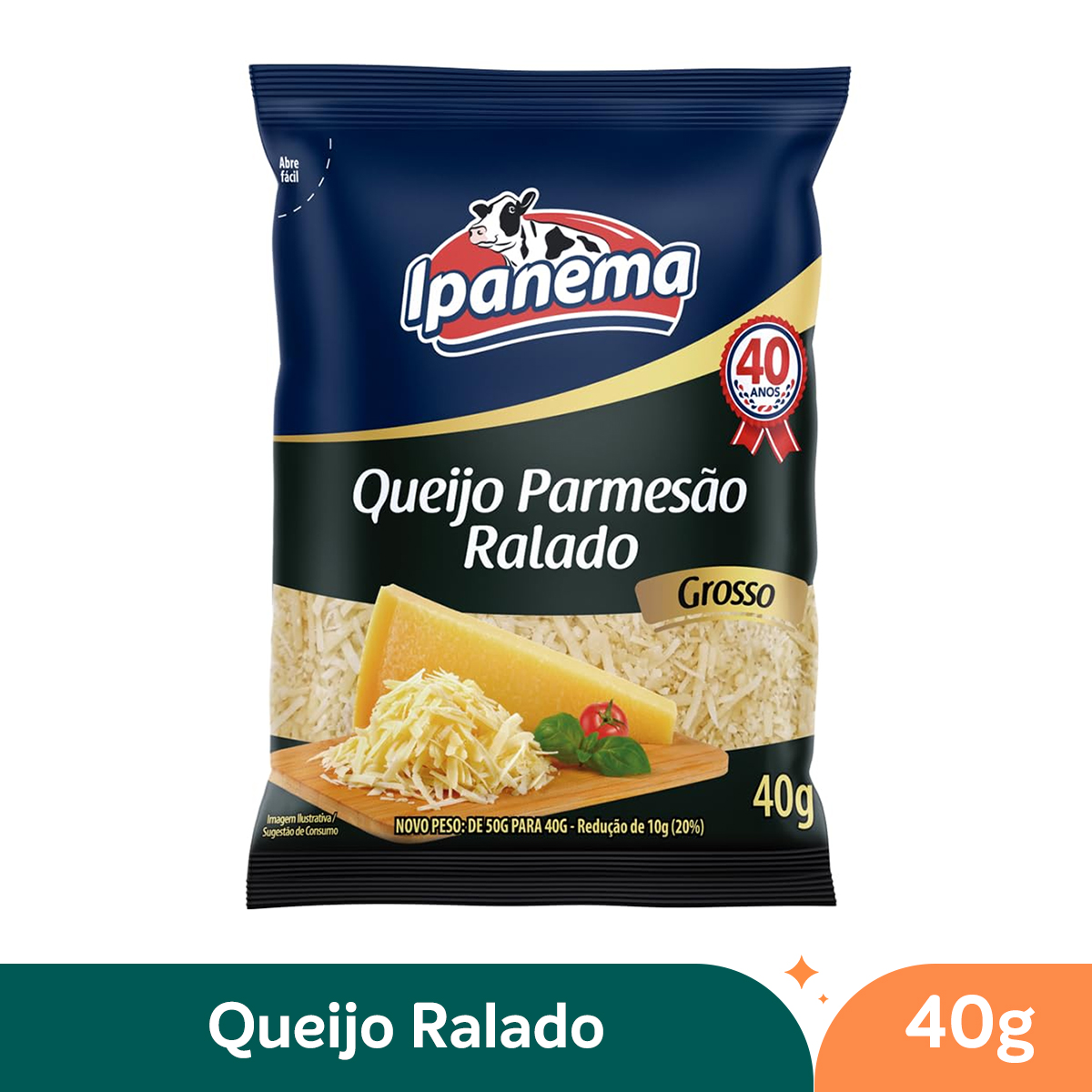 O Queijo Parmesão Ralado Grosso Ipanema - 40g é a escolha perfeita para quem busca ir além do ralado tradicional. Diferente da versão fina (em pó), este queijo apresenta uma textura em lascas mais espessas (flocos), preservando a umidade natural e o sabor picante característico de um bom parmesão curado.